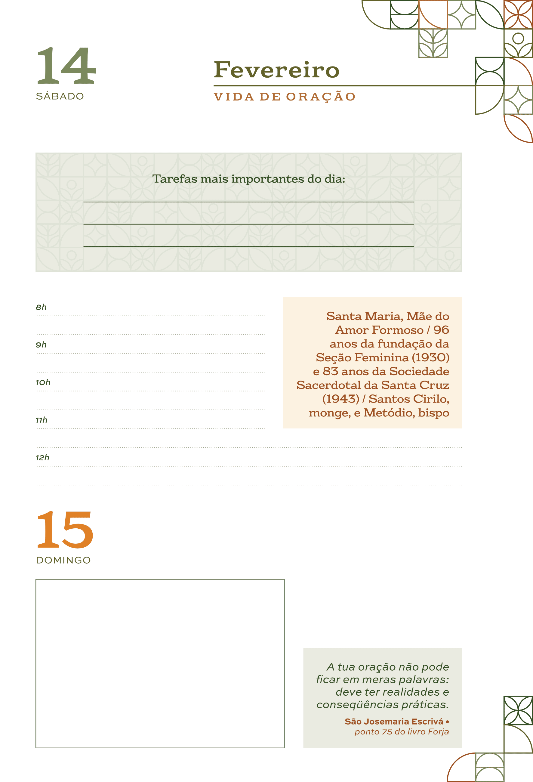 Amei a agenda, ela é linda e muito prática, me ajuda a manter a presença de Deus com frases de São Josemaria que amo.